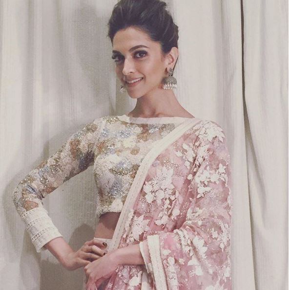 She was recently spotted at the Mirchi Awards. After her Indo- Western dress she rocked the look in this beautiful lehanga. She wore beautiful ivory lehanga by Varul Bahl couture, which she accessorized with Curio Cottage Jewellery. She finished her look with an updo totally puts her modified RK tattoo on display. She was styled by Shaleena. We can't take our eyes off from this mastani because she looked flawless.