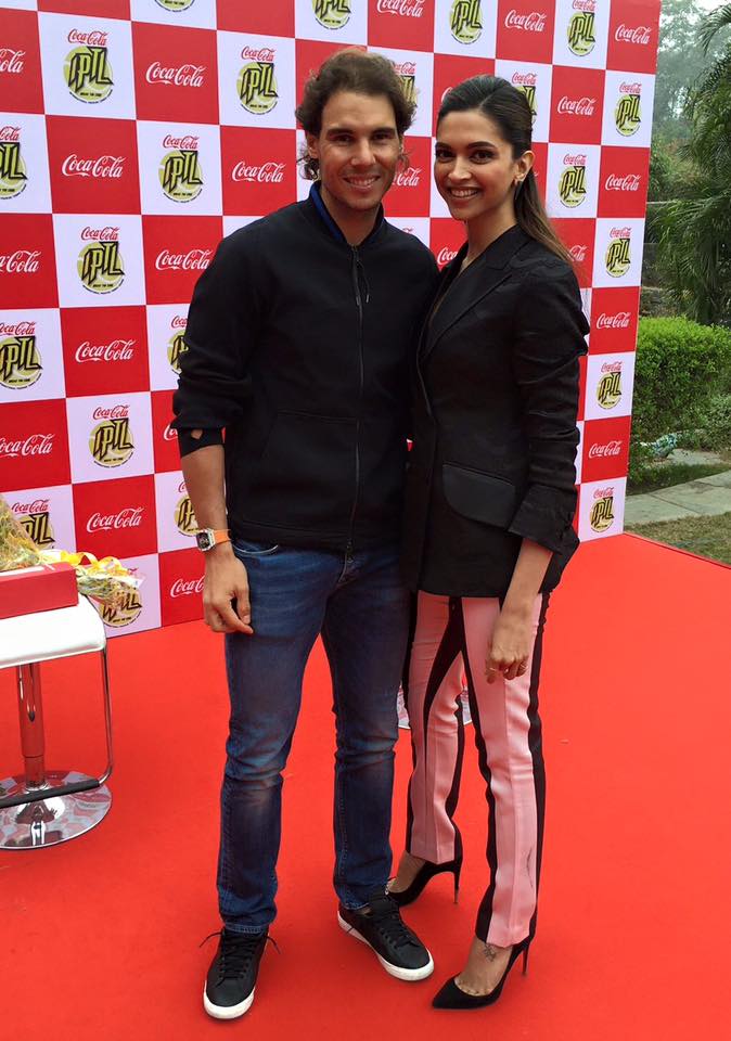 Deepika Padukone was recently spotted in New Delhi for the promotions of Bajirao Mastani. She clicked a photo with famous Spanish tennis legend Rafa Nadal. Deepika looked ravishing in this look.