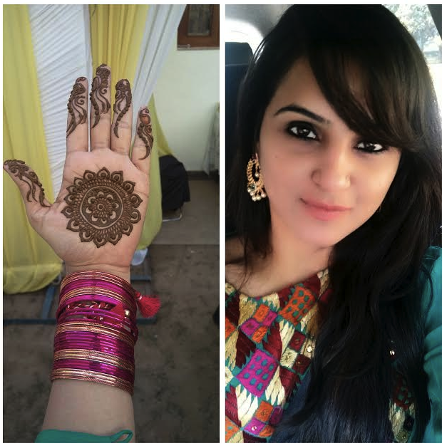 The mehendi function happened at the ladke walas house and it was a simple yet beautiful affair. There was no colour theme as such but green was one of the most preferred outfit colour followed by ivory and whites. I will share some of the photos of the wedding guests and I have to tell you that Chandigarh women have a great sense of ethnic style. Coming ack to my outfit, I wore a green crepe tunic that had a Phulkari patch work on it and wore my leggings underneath. I also added some bangles to give the mehendi feel to the look and finished it up with ethnic pearl earrings.