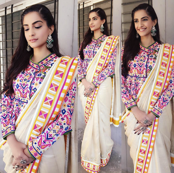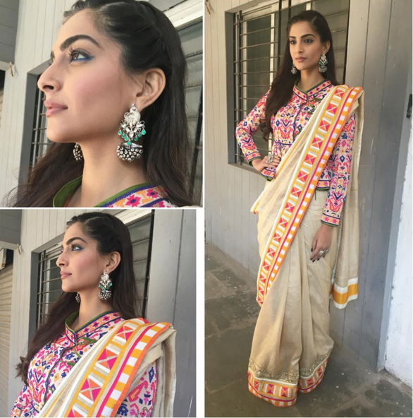 Sonam Kapoor is very busy for the promotion of Neerja. She was recently spotted in an event where she opted for AbuJani and Sandeep Khosla outfit which she accessorized with beautiful jewelry by Amrapali and Apala by Sumit.