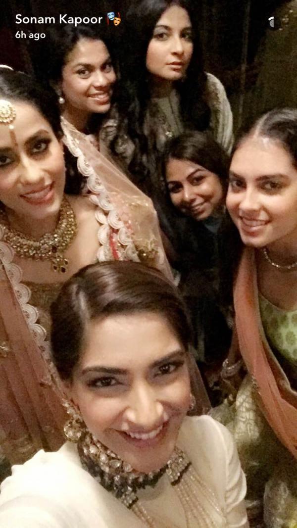 Sonam Kapoor is busy in attending her best friend's wedding. And while the fashionista shared some beautiful photos of her from the wedding on her social networking handle we as usual loved her looks. Rhea and her friends were also spotted there but Sonam just stole the show. Take a look at this wedding selfie with the bride...
