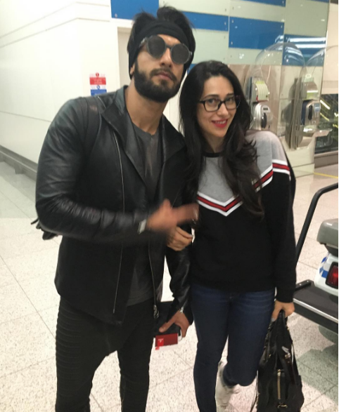 Ranveer Singh one crazy actor in Bollywood and everyone his fans even in an industry. Today, he is accompanied by none other than Karisma Kapoor and he also took a cool selfie with her on the airport. Well, Karisma look stunning and yes, don't forgot Ranveer's pout in this selfie!