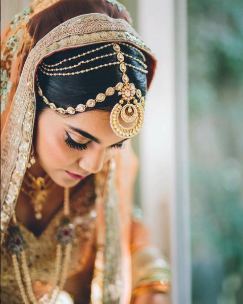 A bride’s attire is definitely incomplete without Maang tika or a Matha Patti but every bride need not go the regular way. There are extremely diverse head accessories present for a bride out there. From “matha patti” to even more indo-western trendy designs.Today, we get you some major prinspirations from brides who went a different way for their hair.Even if you are in doubt to experiment on your wedding day then wear one on your reception or sangeet.