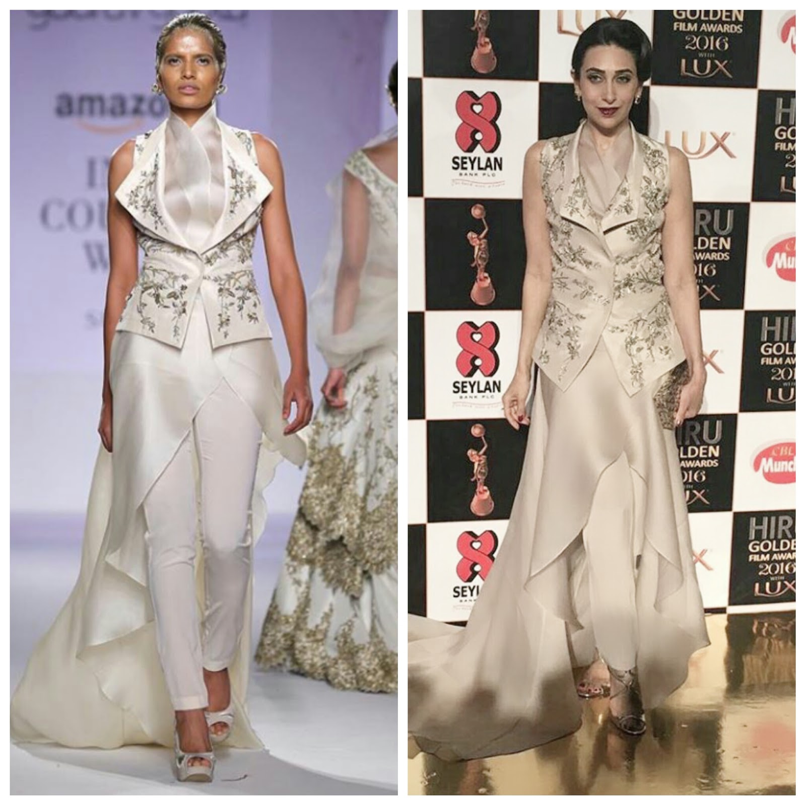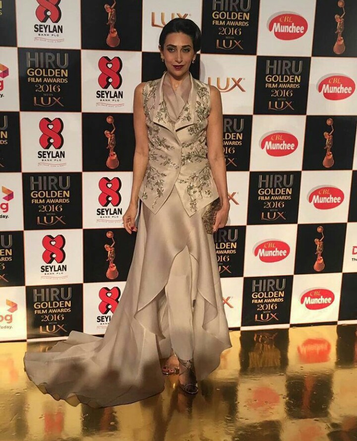 She is currently in Sri Lanka for the Hiru Golden awards and earlier in the day she was clicked with everything ever charming Madhuri Dixit . For the awards she wore Cream coordinates by designer Gaurav Gupta from his couture 2015 collection. The outfit is a combination of enchanting Zardosi embroidered jacket with Demi wrap silk organza drape. She complimented her outfit with a beautiful clutch by Judith Leiber, shoes by Jimmy choo and jewellery by Maithli Kabre, Varun Raheja and Minerali. She was styled by celebrity stylist Esha Amiin.