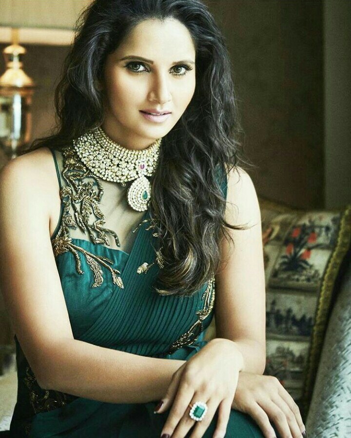 #2 Sania wore a stunning Emerald gown by Gaurav Gupta and she again complimented it with Jewellery from PC Jewellers. She was styled by Esha Amiin.