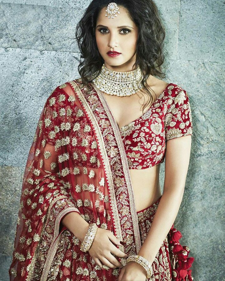 Tennis Star Sania Mirza is one stylish lady! We love how she has evolved into a true fashionista. Sania shot for Outlook Splurge and she looked like a dream bride on the cover of the magazine. Sania wore a gorgeous Sabyasachi Heritage Bridal Lehenga. She was styled by Esha Amiin. Sania looked ethereal in all her three looks.