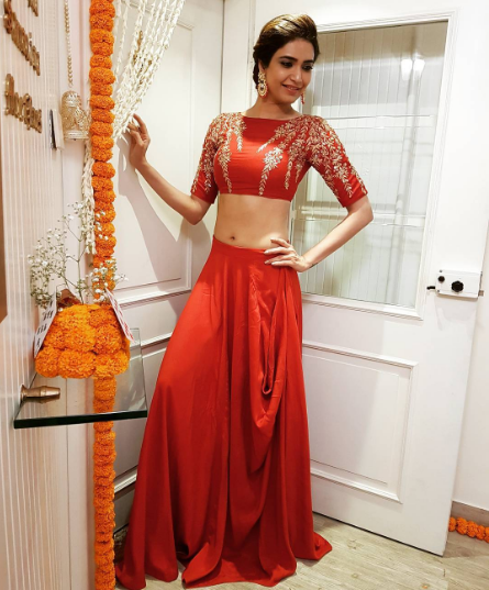 #2. Karishma Tanna looked her ethereal best in a red lehanga from Prathyusha Garimella which she accessorized with earrings from Statement by Fr.