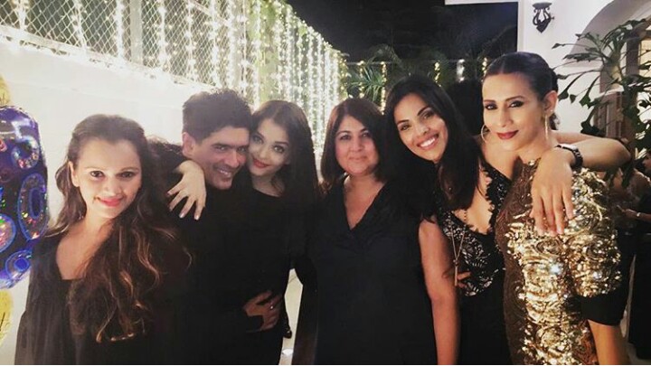 Ace Designer Manish Malhotra turned 50 today and with that comes a series of pictures from his midnight birthday party at his Palli hill home in Mubai which was attended by his close friends and family. Many Bollywood celebs graced the occasion and became a part of his celebrations. Kajol , Karisma Kapoor, Aishwarya Rai with hubby Abhishek Bachchan,Sridevi, Sophie Choudry, Nephew Punit, Karan Johar were all present at the informal bash. The ace designer cut a massive 50 kgs Chocolate cake for his birthday. The party seemed like a lot of fun. We got our hands on inside pictures from the party.