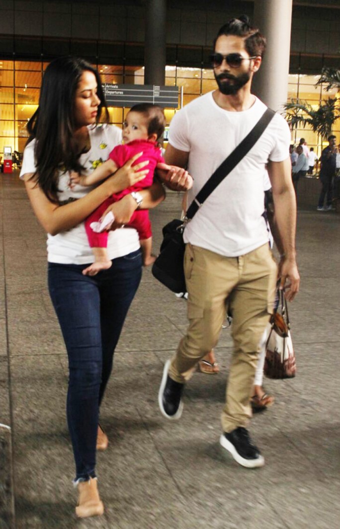 Shahid Kapoor has always been an overtly protective father protecting his daughter Misha from paparazzi. Yesterday, the full family was spotted for the first at the airport where Mira was holding Misha for the first time. Shahid was seen holding Misha's hand as the three stepped out. Misha looked adorable.