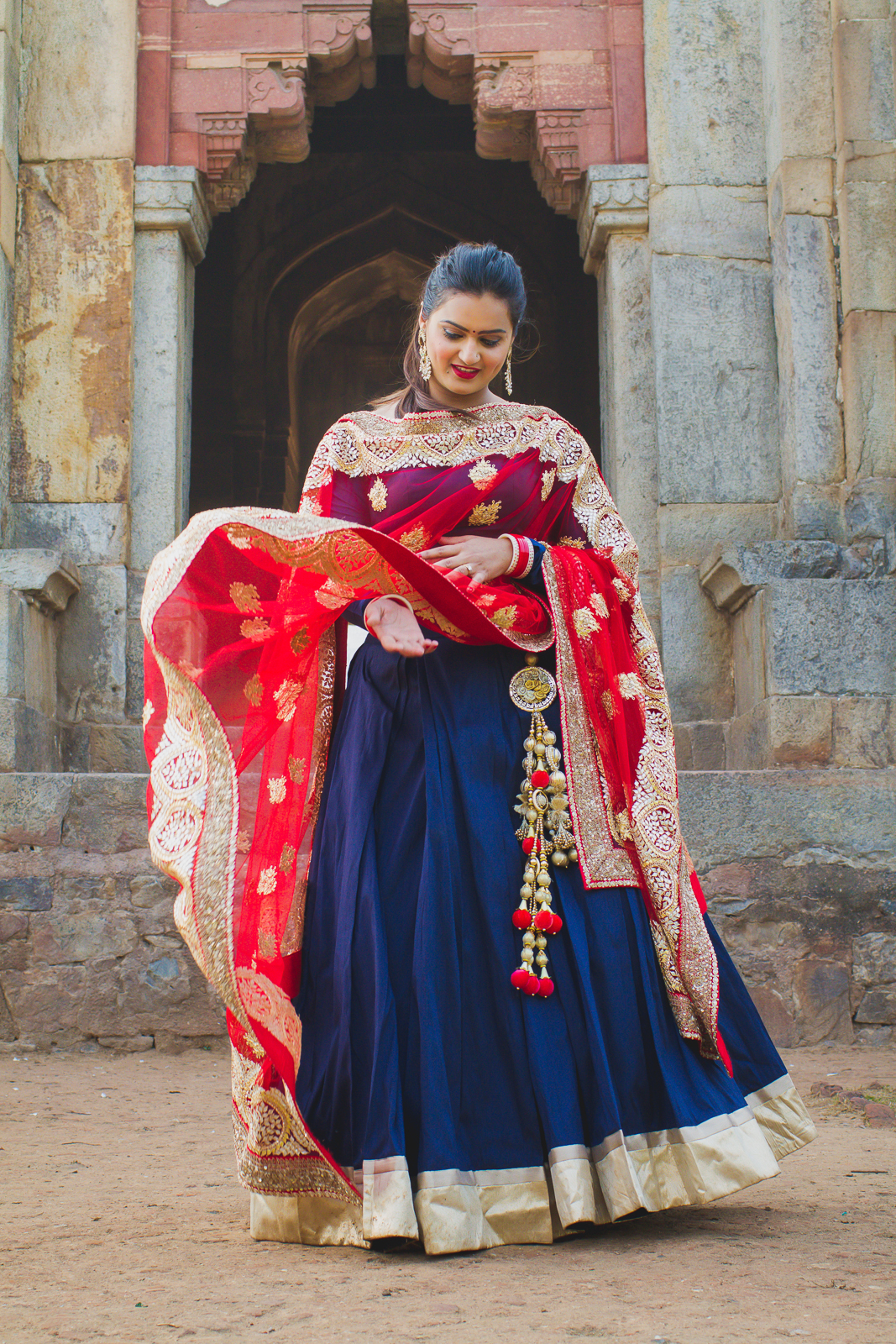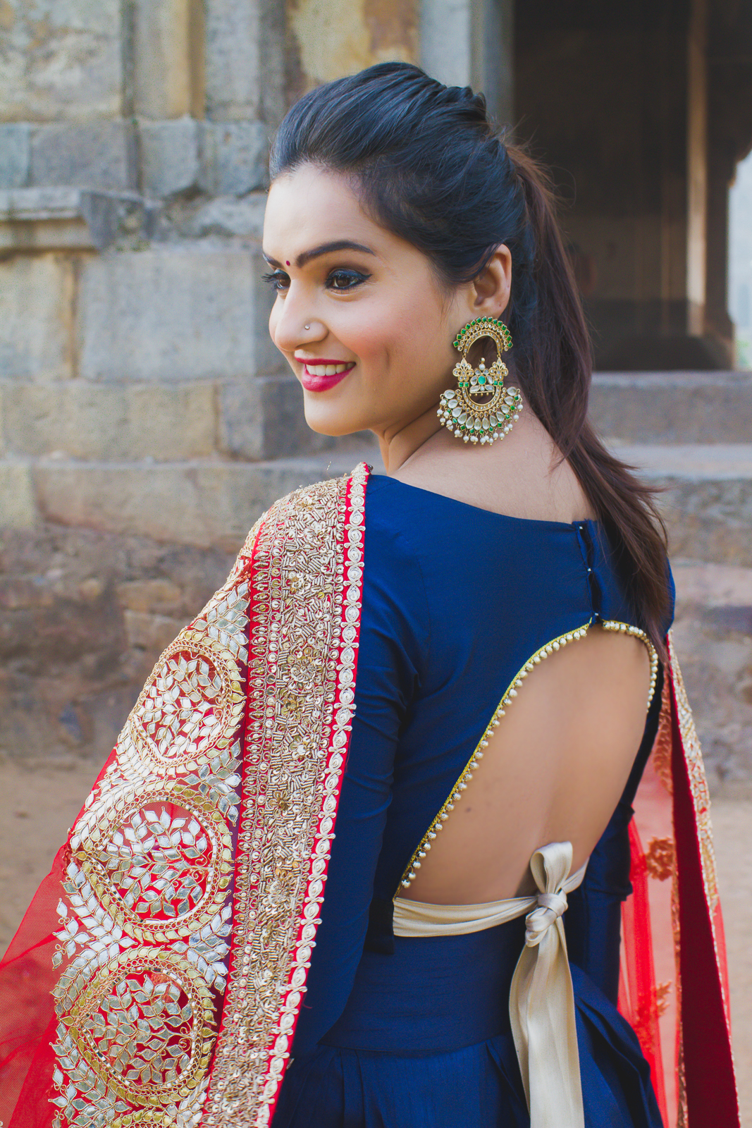 Designers who take both their art and creativity slowly to their stride are my favorite kinds. When I first spoke to Swati, I knew that she had an eye for details that a lot of people are missing in today’s time. She lovingly creates handcrafted clothing that has both individuality and soul in it that you wouldn’t even sometimes find at the biggest of the showroom. With the advent of the internet I have realized that if you find the right kind of partner/designer then you can co-create a dream outfit for your self and in my case I worked with Swati (via emails) to make this stunning blue lehenga set that I am sure you all have seen in my #weddingbytes promotions. The banners looked just so good courtesy Swati.