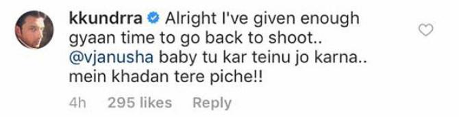 Do You guys remember a picture posted by Anusha featuring herself along with Karan Kundra, a Karan's fan simply stated how he should stay away from a prostitute like 'Anusha!' This obviously didn't go down well with Karan who sorted the hater out in his own way and received lots of applaud for it.