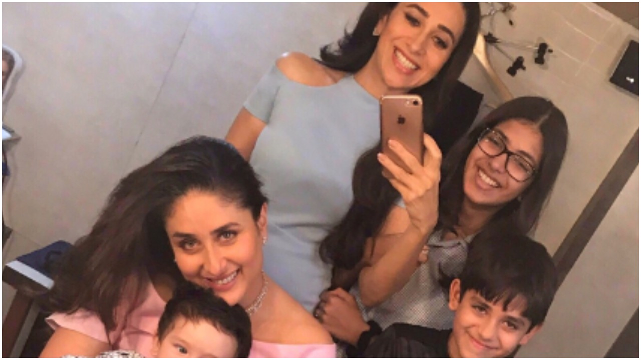 Kapoor sisters shot for an ad yesterday and they also posed for the shutterbugs. The siblings came together for a photo shoot that had them twinning in pastel midis, and Karisma wasted no time in sharing her favourite behind-the-scenes moments of the day with her fans. Taimur also visited on the sets to meet mommy Kareena. Karisma captured this moment perfectly.
