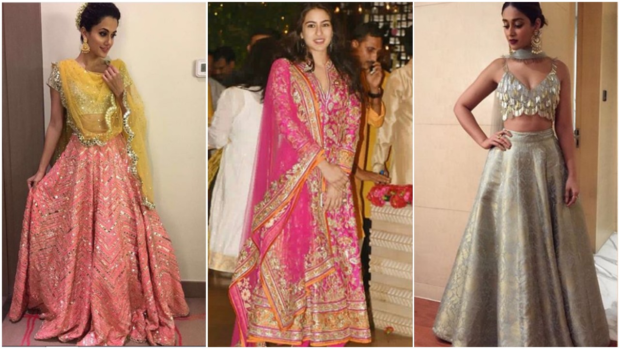 #3. Tapsee Pannu's lehanga is everything. The beautiful mirror work and color combination. Don't you guys think that this is your perfect Karva chauth look?