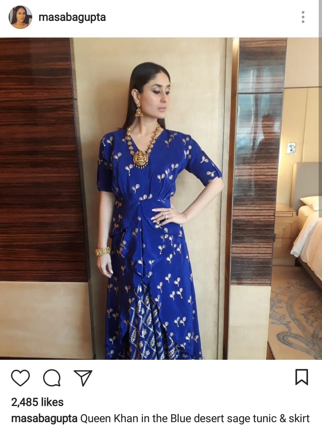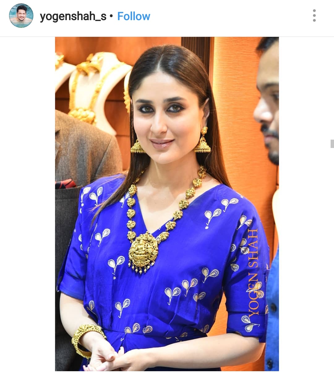 Yesterday, she attended an event in Delhi and looked super stunning in a blue ethnic ensemble. Kareena teamed up her printed blue tunic with a similar printed skirt. Her eye make-up was spot-on and her nude lips were keeping the make-up subtle. Kareena rounded up her look with a gold bracelet and chunky gold necklace. Her gorgeous look was styled by Tanya Gharvi.