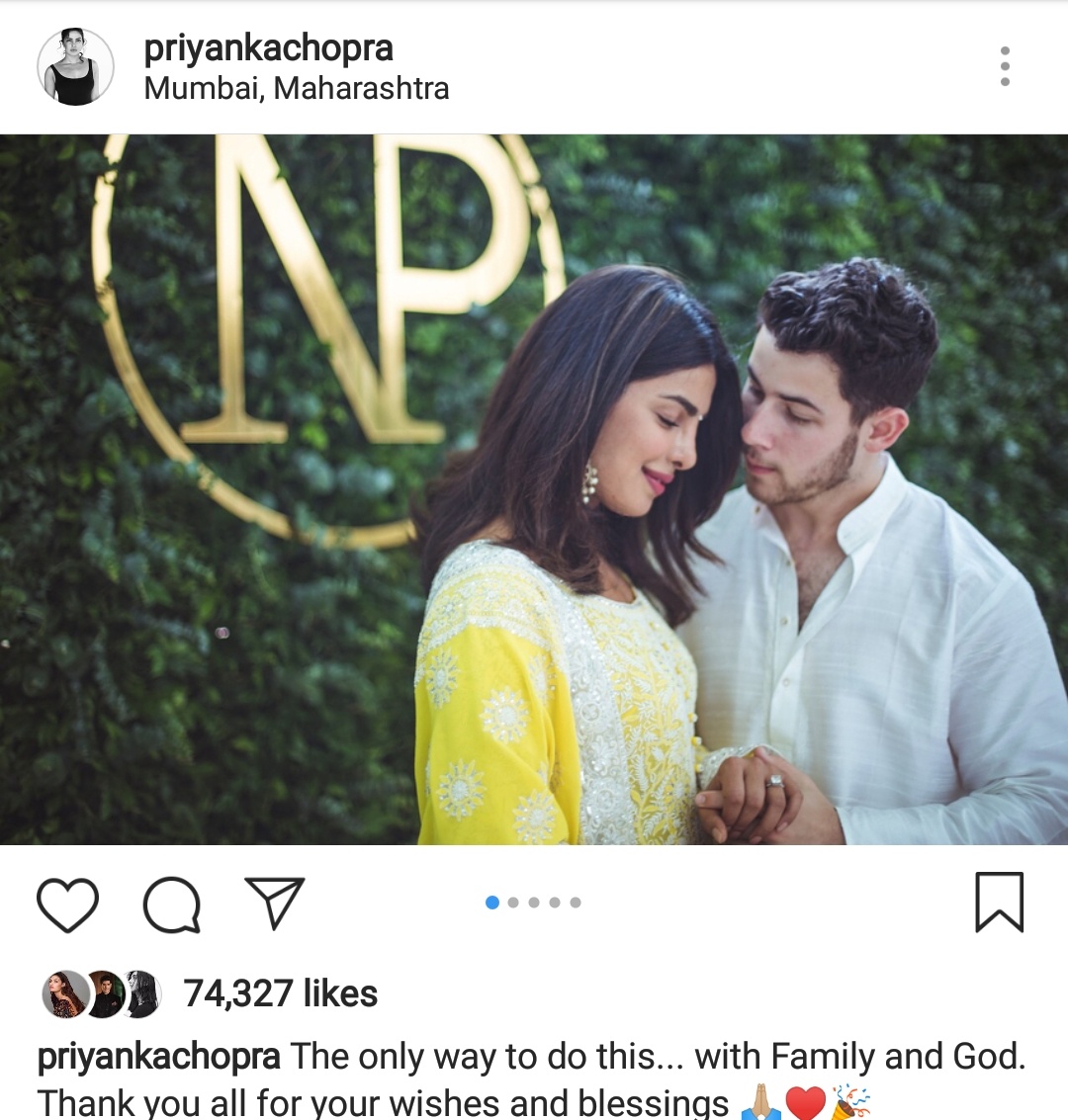 After months of rumours and speculation, Bollywood actor Priyanka Chopra and American singer Nick Jonas made their relationship official with a roka ceremony today. They look madly in love with each other. Priyanka Chopra took to Instagram and shared these beautiful photos from her Roka ceremony with Nick Jonas.